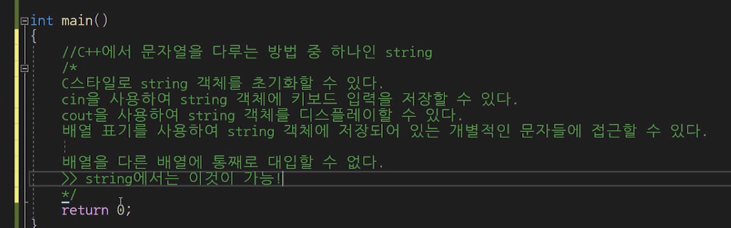 cin은 공백을 만났을 때, 문자열의 끝이다 라고 인식한다.