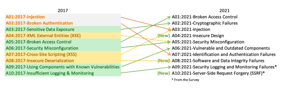 A02:2021-암호화 실패는 근본 원인이 아니라 광범위한 증상이었던 이전에 민감한 데이터 노출로 알려진 #2로 한 위치 이동합니다. 여기서 새로운 초점은 종종 민감한 데이터 노출 또는 시스템 손상으로 이어지는 암호화와 관련된 실패에 있습니다.